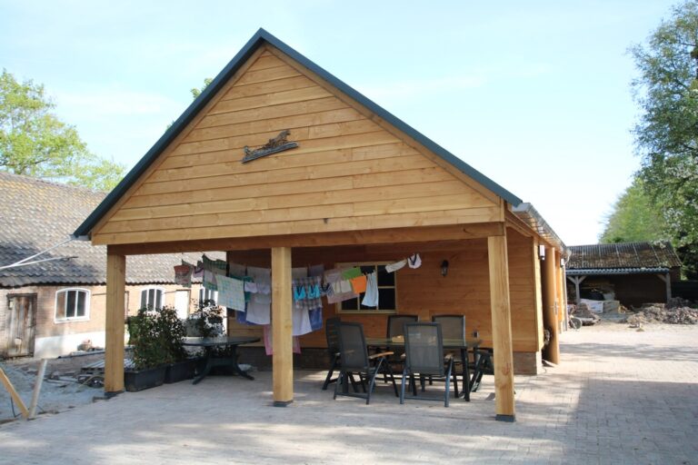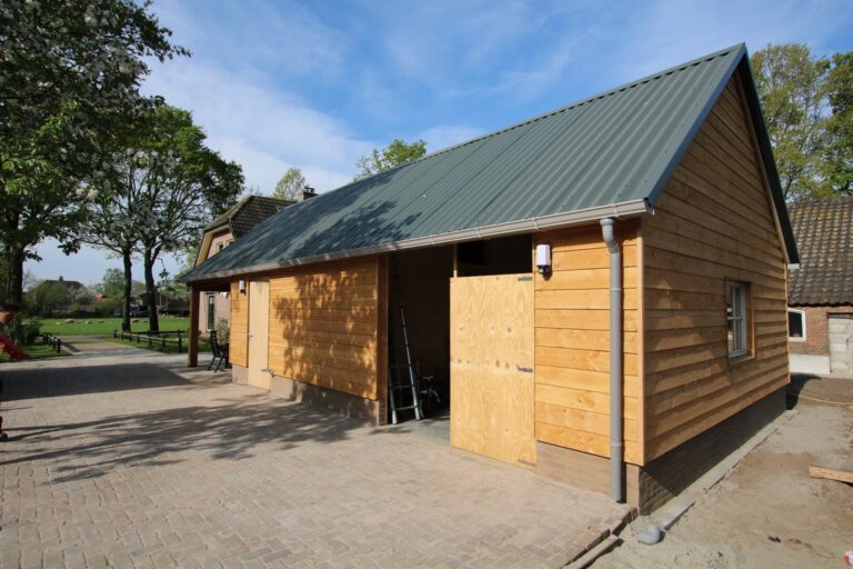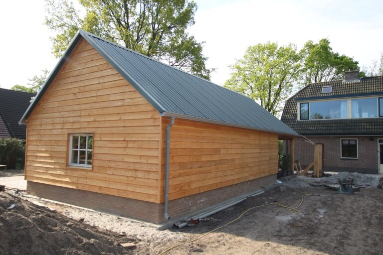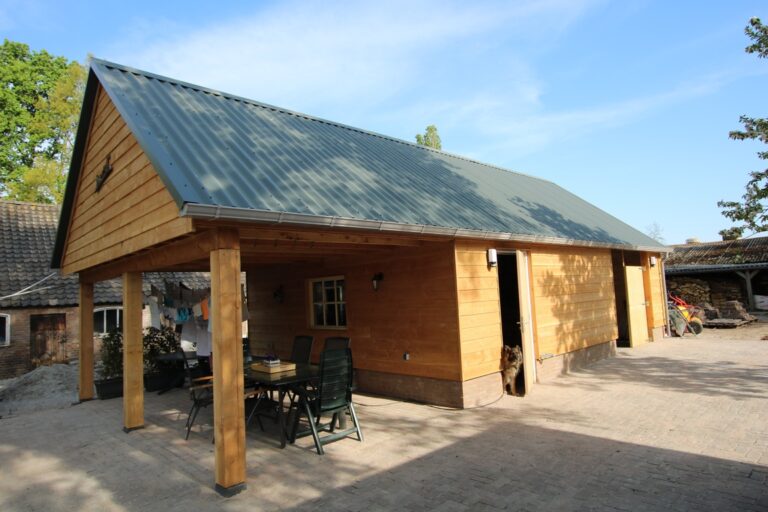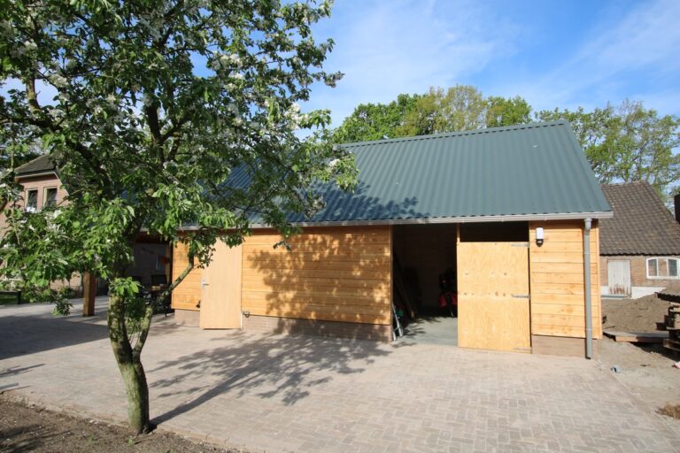 In putten wordt een nieuwe berging met veranda gebouwd. deze naturel Douglas berging wordt voorzien van meranti kozijnen en een sandwichpanelen dak. De berging die bestaat uit een garage, opslagruimte en een veranda wordt geheel geïsoleerd uitgevoerd.